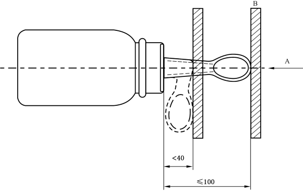 試樣的主軸與拋光鋼板垂直。在試驗開始時,奶嘴或飲用部件允許偏離主軸為 5°。以10±2mm/min 的速度施加10±1N的力到100 mm×100 mm 的拋光鋼板上。測量從鎖緊環(huán)到奶嘴或飲用部件彎曲點的距離。如果沒有鎖緊環(huán),則測量奶瓶瓶身瓶口到奶嘴或飲用部件彎曲點的距離。