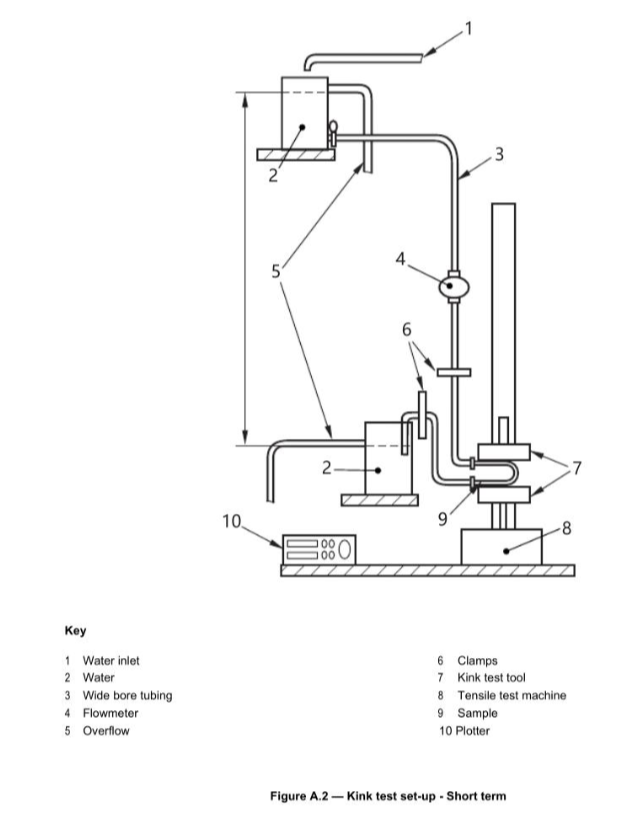 測(cè)試短期使用<1h的醫(yī)用導(dǎo)管扭結(jié)力的測(cè)試方法,當(dāng)彎曲導(dǎo)致流量減少,使得通過(guò)直管的初始流量減少50%以上時(shí),管子被定義為扭結(jié)。符合 EN 13868-2002、ISO20698:2018 7.2 Catheter kinking test