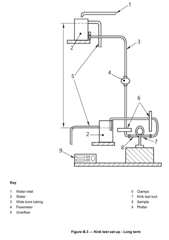 測試長期使用>1h的醫(yī)用導(dǎo)管扭結(jié)力的測試方法,扭結(jié)長度以流過相同長度的水平直管的流量為50%或更少的環(huán)的周長來測量。符合 EN 13868-2002、ISO20698:2018 7.2 Catheter kinking test